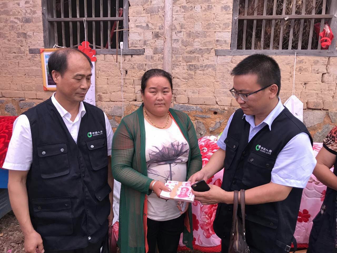 當天下午,工作組兵分兩路,一路由副總經理章躍華帶隊,趕赴受災最嚴重的杭口鎮,挨家挨戶走訪,慰問受災員工家庭;另一路由省市縣三級理賠人員組成,趕赴鄉政府取得傷亡名單,在滿目瘡痍的現場尋找家屬,送上帶有國壽溫情的學平險意外傷害保險賠款2萬元,助其重建家園。
