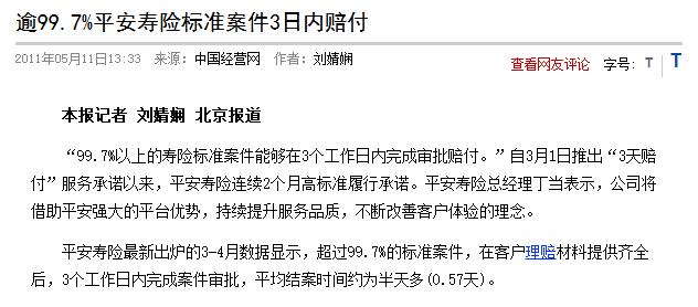 對于符合保險責任的非調查標準案件,平安人壽承諾在三日內結案,充分保障客戶的利益,保證理賠處理時效和保險承諾的兌現,提升了公司理賠服務水平。