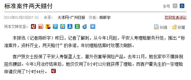 2013年,推出“標準案件,資料齊全,兩天理賠”服務