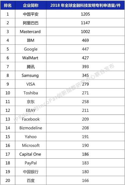 金融科技發明專利排行榜發布 中國平安位居全球第一