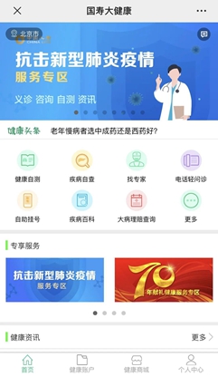 為積極支持國(guó)家新型冠狀病毒肺炎疫情防控工作,中國(guó)人壽與多家投后企業(yè)和第三方服務(wù)商合作,在疫情期間推出國(guó)壽大健康平臺(tái)“抗擊新冠肺炎疫情服務(wù)專區(qū)”。通過(guò)設(shè)立抗擊新冠疫情線上健康服務(wù)專區(qū),為廣大客戶共同抗擊疫情、捍衛(wèi)健康生活提供服務(wù)保障和支持。