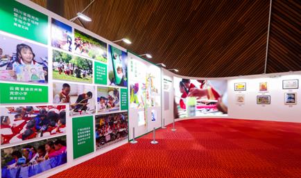 2020年,中國人壽壽險公司發(fā)起“藝術回山”公益計劃,推動助力鄉(xiāng)村美育實踐,讓優(yōu)質美育資源直接連接鄉(xiāng)村小學、鄉(xiāng)村教師、鄉(xiāng)村兒童、鄉(xiāng)村家庭,通過豐富的形式,讓孩子們得到更多藝術滋養(yǎng)。藝術回山專區(qū)主要展示了中國人壽壽險公司相關美育實踐案例及成果,讓參觀者體會到其中的價值和意義。