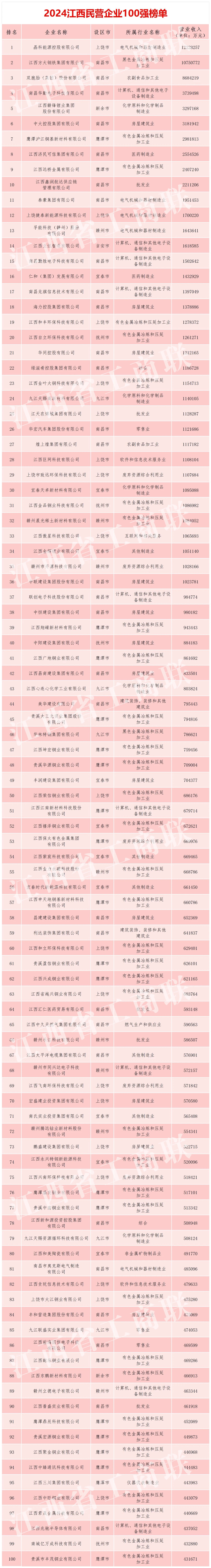 江西企業網訊 11月11日上午,2024江西民營企業100強發布會在南昌舉行,會議由江西省政府新聞辦、江西省工商聯、江西省地方金融管理局主辦。會上發布了“2024江西民營企業100強”、“江西省制造業民營企業100強”、“江西省服務業民營企業20強”榜單,以及《2024江西上規模民營企業調研分析報告》、《江西民營企業社會責任報告》。