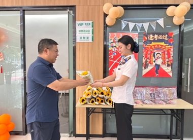 為全力護航莘莘學子逐夢考場,萍鄉分公司柜面積極踐行社會責任,以實際行動助力高考。考試期間,柜面特別打造“一舉奪魁”特色服務:設立專屬補給站,為考生及家長提供防暑降溫飲品、文具套裝等實用物資,解決不時之需;精心書寫高考祝福卡片,張貼勵志標語,更設置充滿儀式感的心愿墻。