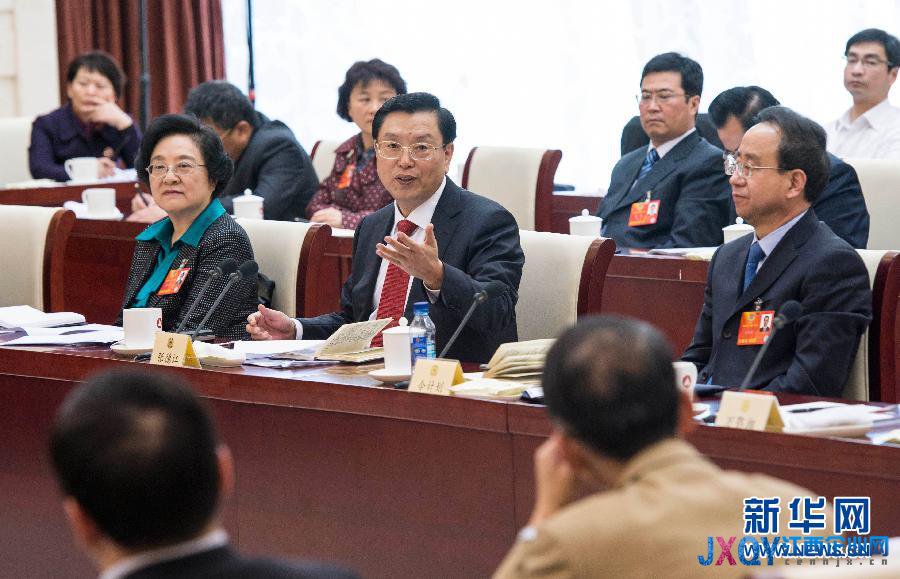 3月4日,中共中央政治局常委、國務(wù)院副總理張德江看望出席全國政協(xié)十二屆一次會(huì)議的民革、臺(tái)盟、臺(tái)聯(lián)界委員并參加聯(lián)組會(huì)。 新華社記者 王曄攝