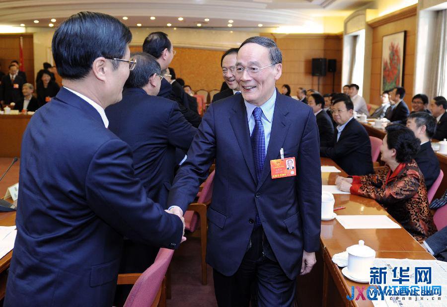 3月4日,中共中央政治局常委、中央紀(jì)委書記王岐山看望出席全國政協(xié)十二屆一次會(huì)議的農(nóng)工黨、九三學(xué)社界委員并參加聯(lián)組會(huì)。 新華社記者 張鐸攝