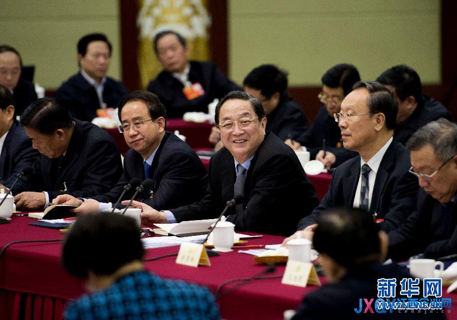 3月4日,中共中央政治局常委、全國政協(xié)十二屆一次會(huì)議主席團(tuán)會(huì)議主持人俞正聲看望出席全國政協(xié)十二屆一次會(huì)議的中共界委員并參加聯(lián)組會(huì)。新華社記者 李學(xué)仁 攝