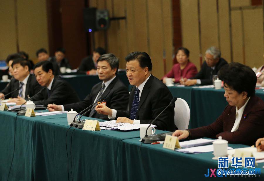 3月4日,中共中央政治局常委、中央書記處書記劉云山看望出席全國政協(xié)十二屆一次會(huì)議的工會(huì)、共青團(tuán)、青聯(lián)、婦聯(lián)界委員并參加聯(lián)組會(huì)。新華社記者 劉衛(wèi)兵 攝
