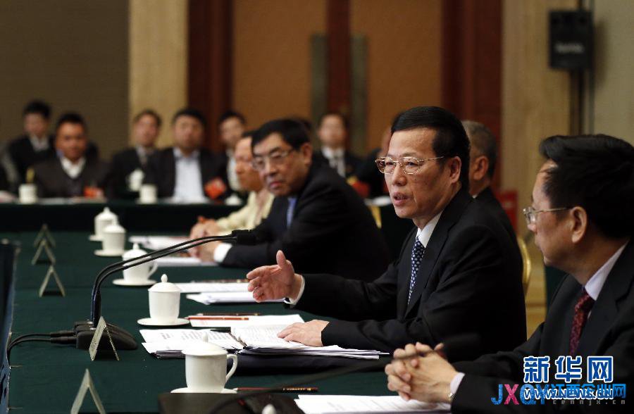3月4日,中共中央政治局常委張高麗看望出席全國政協(xié)十二屆一次會(huì)議的民建、工商聯(lián)界委員并參加聯(lián)組會(huì)。 新華社記者 鞠鵬 攝