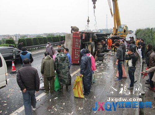 上饒:運魚車高速側翻 9噸鮮魚“路上游”