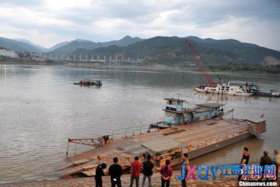 3月20日,搜救船出江打撈沉船。中新社發張麗君攝