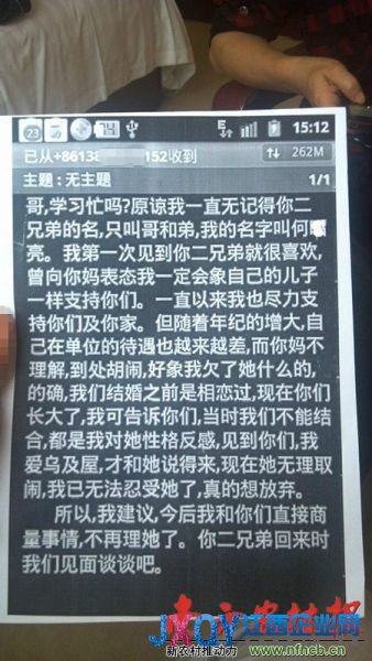 而在李梅提供的一條由何某亮手機發給她兩個兒子的短信中,何某亮則說:“我第一次見到你二(兩)兄弟就很喜歡,曾向你媽表態我一定會象(像)(對)自己的兒子一樣支持你們……今后我和你們直接商量事情……”