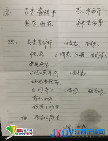方某:她只是說了一個用餐標準,因為剛過完年,很多工作人員還沒到位,餐需要提前訂,后來電話溝通的時候,她告訴我大概有什么菜,之后還有一個手寫的菜單。