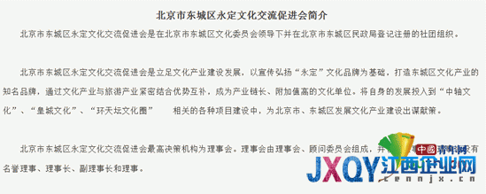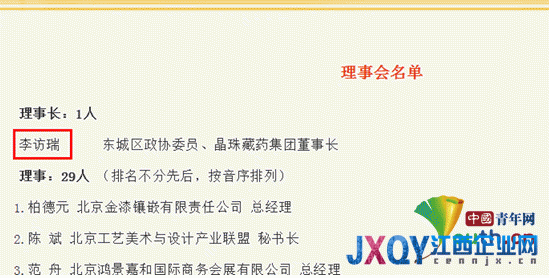 #p#副標題#e#點擊右下側的永定文化交流促進會,便進入北京市東城區永定文化交流促進會的官方網站,其中在"促進會簡介"中有這樣的文字:"北京市東城區永定文化交流促進會是在北京市東城區文化委員會領導下并在北京市東城區民政局登記注冊的社團組織。""北京市東城區永定文化交流促進會最高決策機構為理事會。理事會由理事會、顧問委員會組成,并設有監事會。理事會設有名譽理事、理事長、副理事長和理事。""北京東城區永定文化交流促進會已建設了永定書院、永定會所、永定國禮展廳、永定小劇場等文化活動和設施。"在北京市東城區永定文化交流促進會官網上的"組織架構"欄目中,赫然寫著理事長為東城區政協委員、晶珠藏藥集團董事長李訪瑞。