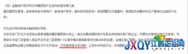 在某知名招聘網站上,中國青年網記者還發現了青海晶珠藏藥高新技術產業股份有限公司在招聘人員時的一段公司介紹文字:北京永定門文化交流促進會是青海晶珠藏藥集團牽頭成立,由北京晶珠國際旅行社聯合政府相關部門和企業,開展北京皇城中軸文化旅游,負責舉辦永定門古皇城入城證書及永定門至鼓樓7.8公里中軸古皇城旅游觀光電動車的運營,金鑲玉城門鑰匙,舉辦名家書畫藝術展覽拍賣、昆侖玉品鑒展和全國土特精品等經濟文化節活動,內設高檔堂會活動等,立足中華民族文化,開拓國際合作。
