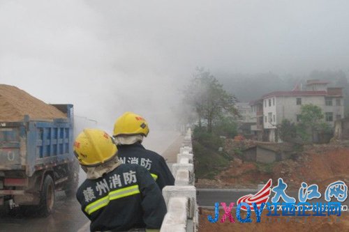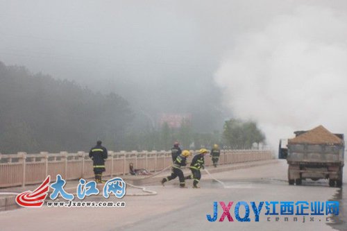 大江網訊 楊洋、黃超、記者朱超報道:4月7日,贛州市石城縣溫坊工業園段206國道大橋上一貨車起火,火勢兇猛。接到報警后,贛州市石城縣消防大隊迅速出動兩車10名官兵奔赴現場。經過約十五分鐘的撲救,大火于6時35分被成功撲滅。目前,事故的原因正在進一步調查當中。