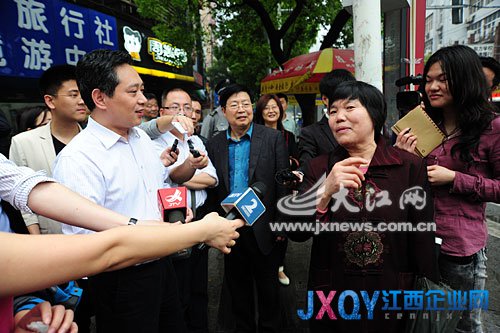 南昌市長(zhǎng)陳俊卿在街頭詢問市民對(duì)“闖紅燈”的看法