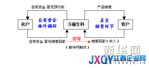 萬福生科在財務造假中,首先借用農戶的身份證,為他們開立個人銀行賬戶,但這些賬戶卻是由萬福生科來控制。公司將自有資金打到這些個人賬戶中,冒充為“預付給農戶的收購款”;而后,再將資金從農戶的個人賬戶上打回給公司,冒充為“客戶的銷售回款”。