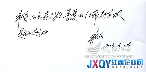 專訪結束之后,宗慶后欣然給本報題字,“希望江西老百姓喜愛的江南都市報越辦越好”。