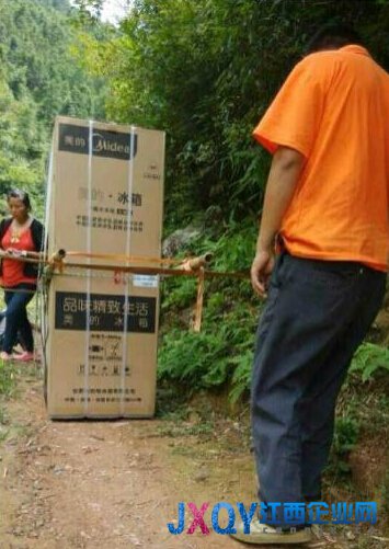 說送就送,宋老板把冰箱裝上車,親自開車送過去,這是龍山村的第一個美的冰箱的用戶,也是第一個購買冰箱的用戶。經過10多分鐘的車程,宋老板來到山腳下,接下來的路途將是要翻越一座海拔500米左右的高山,宋老板請來兩個當地的挑山夫,用竹子扎了一個轎子,把冰箱固定在轎子上,讓冰箱“坐轎子”去用戶家。崎嶇的山路,擋不住美的冰箱服務用戶前行的腳步,揮灑的汗水,飽含著美的冰箱一線銷售人員火一般的熱情!經過1個小時的艱難跋涉,終于到了山頂。站在山頂往下看,宋奶奶家已經清晰可見。宋老板由衷地感覺到一種輕松和愜意,因為希望就在不遠的前方!
