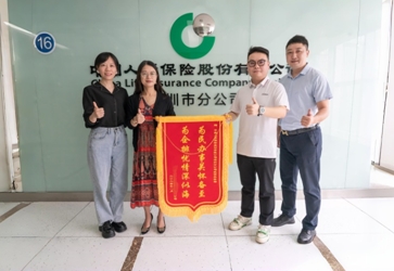 王剛(化名)將錦旗送到中國人壽壽險(xiǎn)深圳市分公司