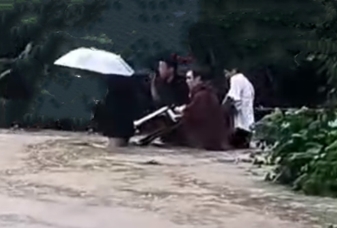 由于連續(xù)降雨,老人家中附近道路地勢低洼,蹣跚趕到時(shí),已經(jīng)水勢及腰。吳明輝趕忙和村民一起將老人抬至安全地帶。老人順利脫險(xiǎn)。