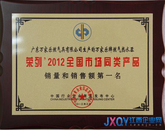 江西企業(yè)網(wǎng)訊 近日,國家統(tǒng)計(jì)局下屬的中國行業(yè)企業(yè)信息發(fā)布中心,在人民大會堂隆重舉行舉辦了“第十七屆全國市場銷量領(lǐng)先品牌信息發(fā)布會”。會上統(tǒng)計(jì)監(jiān)測結(jié)果顯示:萬家樂燃?xì)鉄崴鳂s列2012年度全國市場同類產(chǎn)品銷量和銷售額榜首,并榮獲2012年度消費(fèi)者最信賴品牌稱號,這也是萬家樂連續(xù)第23年占據(jù)燃熱市場銷售龍頭的位置。同時,萬家樂電熱水器、燃?xì)庠睢⒊橛蜔煓C(jī)都進(jìn)入2012年度同類產(chǎn)品全國市場銷量前五名。