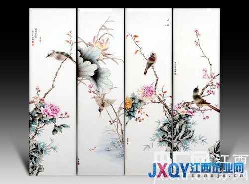 韓志輝作品 釉上彩四條屏《春夏秋冬》