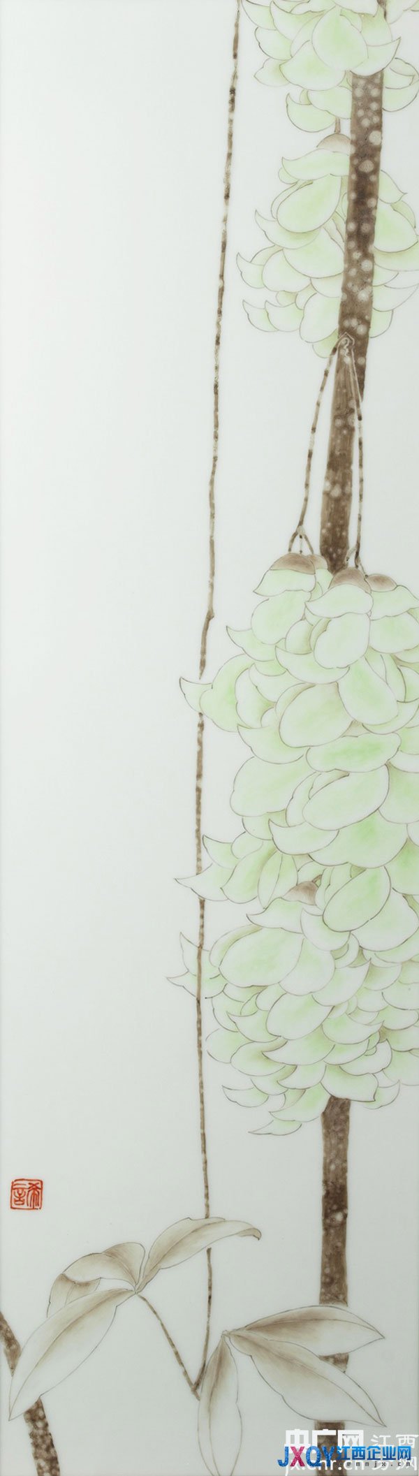品讀朱希睿的瓷畫,能感受到對 “水靜猶明”的向往正是她的心境,她所創作的畫面也無不從中而來。一如坐于案前,托腮凝望,伴著幽幽沉香,或遙想,或感懷;又如窗前扶琴,一曲《瀟湘水云》在琴弦之間體會憑欄美景如畫;再如院中石階之上,泡一壺明前春茶,在水沸聲中望向石門之外的竹林鳥鳴;更如那書房習字,抬頭望向品屏風的一瞬間,仿佛置身于花海之間… …