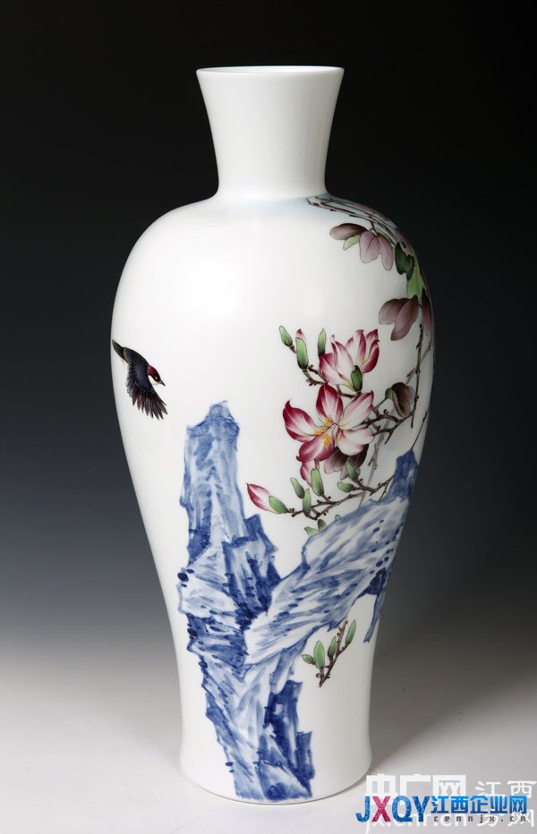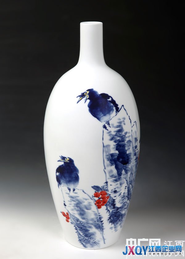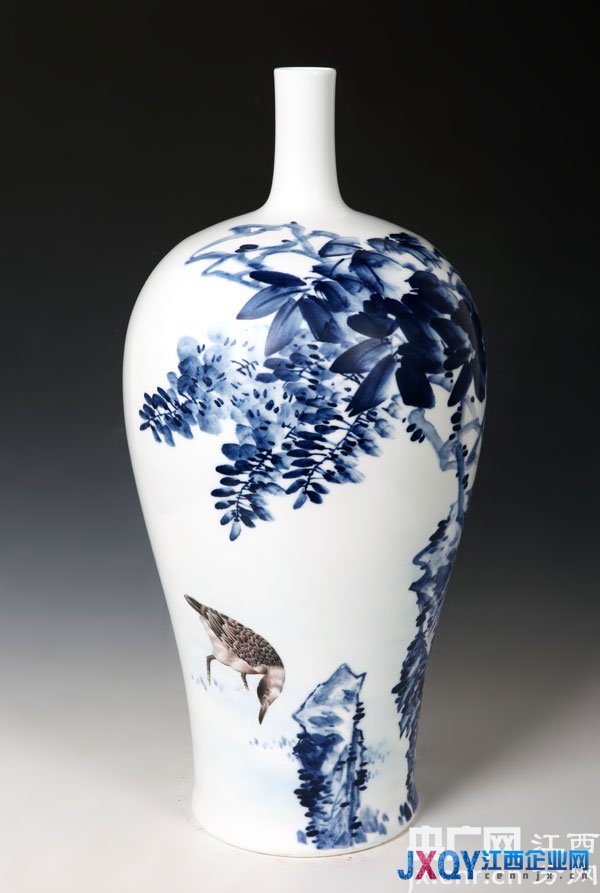 幾年前,他最有代表性的藝術創作還要屬寫意青花,洪南雨用自己獨特的陶瓷藝術語言,形象的表現自己的思想意識和審美感受。從2004年開始,他專攻寫意青花,他筆下的寫意青花花鳥不只是簡單的形式摹寫,而是涵映世界廣大精微于胸的精神抒發。沒有浮躁,沒有刻意,他憑借寧靜的心襟,去發現天地間深沉的意境。
