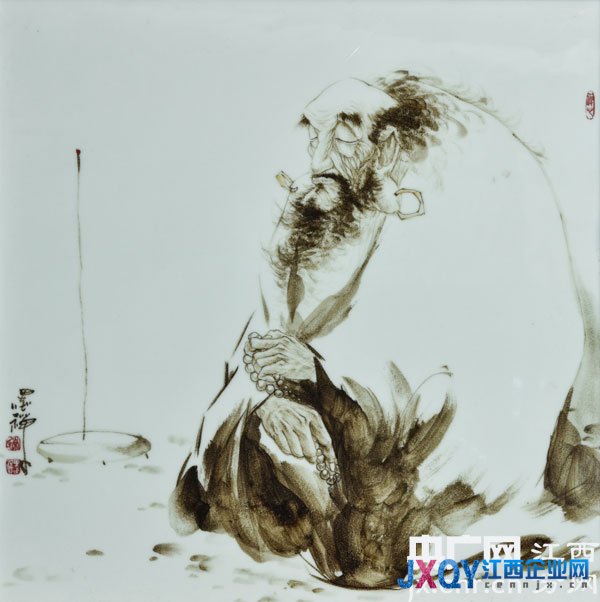 后來一次偶然機會,他潸然醒悟,陶瓷作為特殊的載體,有別于國畫宣紙、油畫布,有它自己的特性,他找到了自己所缺失的東西,從此潛下心來鉆研創作。