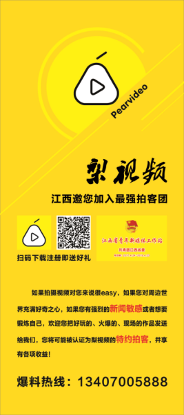 據(jù)了解,梨視頻江西專注老百姓身邊的故事,對(duì)人物類,故事類,奇聞趣事類的視頻或有監(jiān)控錄像的事件都大量需求。另據(jù)了解,今年4月份,共青團(tuán)江西省委授予梨視頻江西-江西省青年新媒體工作站。如果你也熱愛拍攝視頻,歡迎聯(lián)系投稿,一經(jīng)采用,稿費(fèi)從優(yōu)。 聯(lián)系電話:13407005888 曾偉