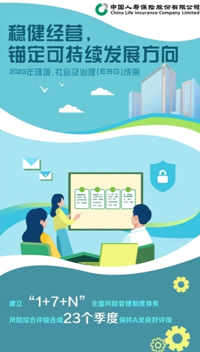 與此同時,中國人壽積極應對“償二代”二期規則下的風險綜合評級指標調整,開展風險綜合評級數據管理工作,公司嚴度風險管理能力自評估工作,并認真進行整改和完善。2023年公司風險綜合評級保持良好評級,已連續23個 A類。