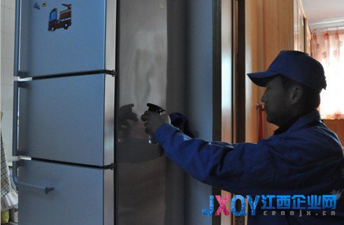 (圖)高師傅細(xì)心地為用戶保養(yǎng)冰箱