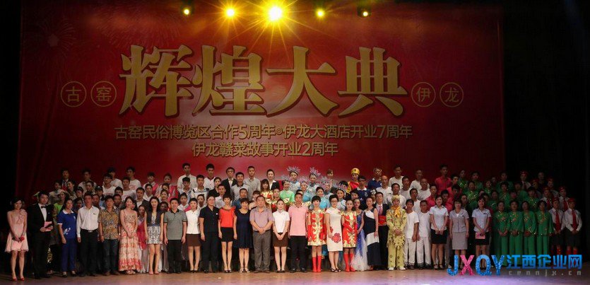 江西企業網訊 2013年9月17日晚,古窯民俗博覽區聯合伊龍大酒店在市群眾文化中心舉辦輝煌大典熱烈慶賀古窯民俗博覽區合作5周年、伊龍大酒店7周年及伊龍贛菜故事開業2周年。此次輝煌大典由古窯人和伊龍人傾情演繹包括舞蹈、相聲、小品、演講等多種各具特色節目,他們用自己獨特的方式恭賀古窯民俗博覽區的合作、伊龍大酒店的成立以及伊龍贛菜故事的開業。
