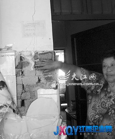 隨后,出現裂縫的幾戶人家開始向有關部門反映。居住在7棟2單元102室的張玉秀說,曾向主管樓房的南鐵分局南昌建筑段反映過她家的情況,單位派人實地勘察后,確定她家有一處承重墻裂開,但對方先后來了3次,都是在裂縫處張貼“檢查標記”,卻沒提出如何維修。