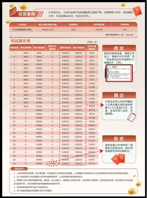 2、上表利益演示僅包括財慧盈和平安生財寶年金保險(萬能型),其它險種具體利益詳見條款。
