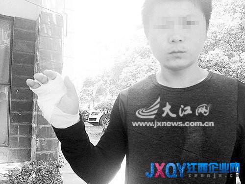本報訊 記者淦丹丹攝影報道:“我兒子才27歲,以后一輩子都要少一根手指頭,可明明是在工作中發生的事故,單位卻推卸責任不認工傷。”5月13日,南昌進賢縣市民何先生的父親向本報投訴稱,兒子去年受聘于江西循翔建設工程有限公司任項目材料管理員,當年10月19日,受項目管理員指派,在維修一攪拌機時發生意外,無名指和小指當場被割斷。如今,為了工傷賠償一事,已多次與單位協商無果。