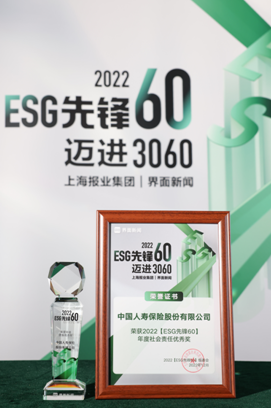 同日,由上海報業集團|界面新聞主辦的第五屆界面財經年會在上海中心舉辦。為梳理企業、管理層在社會及市場上的年度表現,十三大榮譽榜單也在當天揭曉。中國人壽壽險公司榮獲“2022【ESG先鋒60】年度社會責任優秀獎”。