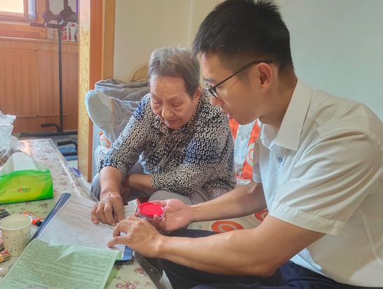 工作人員上門為客戶許奶奶辦理業務