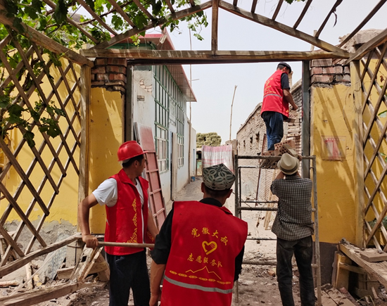 阿克陶縣玉麥鎮霍伊拉艾日克村駐村工作隊隊員幫助村民維修房門