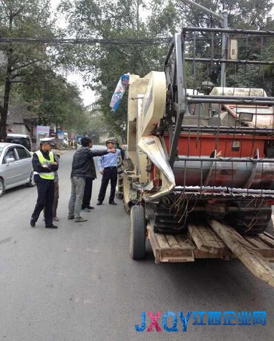 早上10點左右,交警三大隊曙光中隊在副中隊長萬文華的帶領下,在景瑤線路口設置臨時檢查卡點對過往車輛進行安全檢查,當民警正有條不紊的開展檢查時,遠處一輛向前慢慢挪動的拖拉機引起了民警的注意。從遠處看去,明顯超高了,待車駛近,民警立即攔下檢查,繞到車后一看,連民警都嚇一跳,拖拉機后面竟然還裝著一輛超大的收割機,這收割機不僅車身比拖拉機寬,而且裝在拖拉機上也沒有做任何的安全措施,只是靠著收割機自身的剎車固定在車上的,這樣的裝載十分的危險,極易引發交通事故,民警要求駕駛員出示相關證件,并將收割機卸下,轉用其它方式運走。剛開始駕駛駛員還不以為然,只是說為了圖個方便,經過檢查,民警發現該駕駛員的手續都齊全,便對其“動之以情、曉之以理、懾之以法”,通過民警的耐心勸說教育,駕駛員終于明白了這樣的裝載的危險性,配合民警將收割機卸下,并表示今后不會再這樣裝載了。